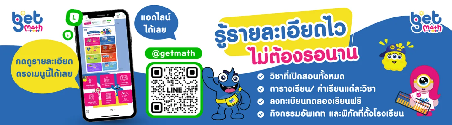 โรงเรียนกวดวิชาเก็ตแมธ (GetMath) มุ่งสร้างความภาคภูมิใจ ผ่านหลักสูตรมาตรฐาน กิจกรรมการเรียนรู้อย่างเป็นระบบส่งเสริมทักษะ และศักยภาพพัฒนาเด็กๆ อย่างรอบด้าน เราเชื่อว่า “ทุกคนสามารถเรียนรู้ได้อย่างมีความสุข”